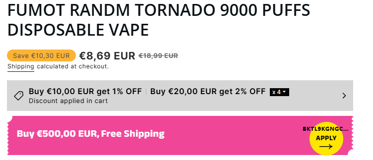 Overall, the Fumot Randm Tornado 9000 disoposable vape is not only excellent in design and performance, but also convenient for people to carry around. The mesh coil also allows customers to fully enjoy the smooth taste. If you are considering buying a new e-cigarette, this product is undoubtedly a perfect choice.