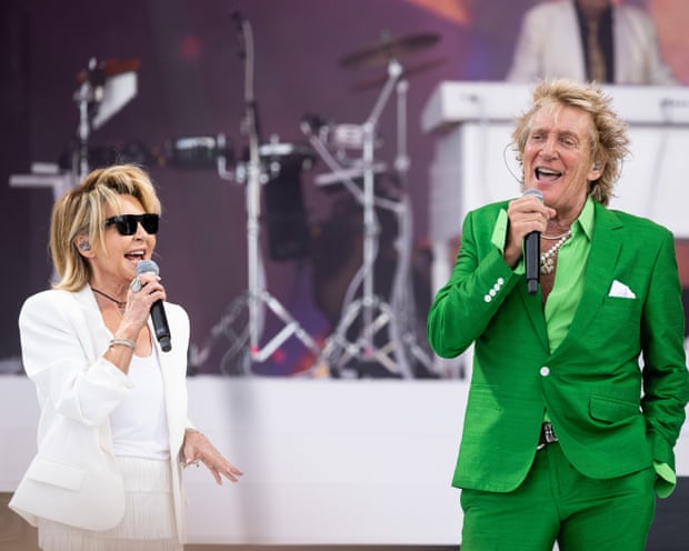 Lulu performs with Rod Stewart on the Pyramid Stage at Glastonbury festival. Photograph: Harry Durrant/Getty Images