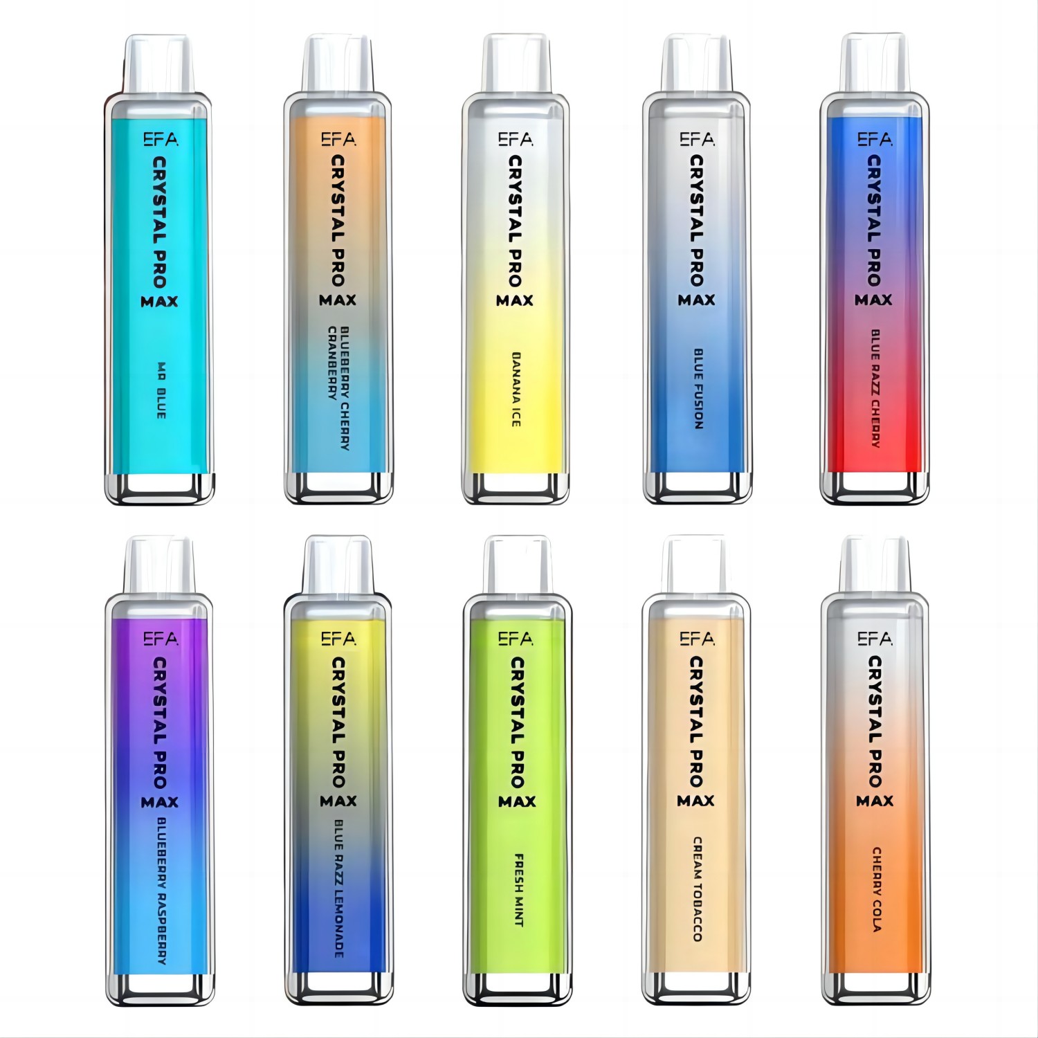 Equipped with a 1.2-ohm mesh coil, the EFA Crystal Pro Max 4000 puffs disposable vape intensifies every draw to deliver smooth, Taste vapor packed with rich taste in each puff. With 4000 puffs per device, the EFA Crystal Pro Max 4000 puffs provides a consistent and enjoyable vape session from start to finish.