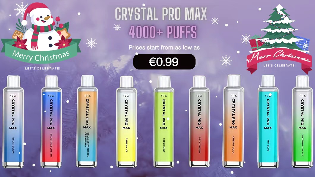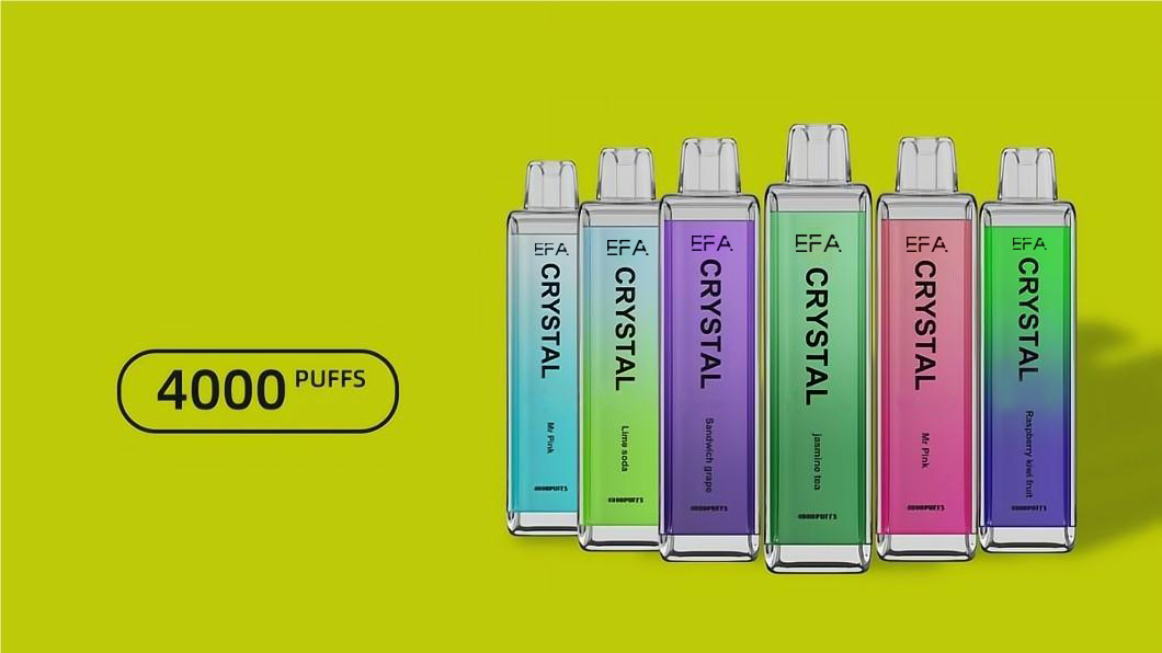 The EFA Crystal Pro Max 4000 puffs disposable vape is the ideal choice for e-cigarette users who want a compact and convenient device without sacrificing Taste., providing up to 4000 puffs, is ready to use out of the box, and boasts a wide range of delicious Tastes, delivering a simple and satisfying mouth-to-lung (MTL) experience.the EFA Crystal Pro Max 4000 features a rechargeable 1500mAh battery and USB Type-C charging for longer-lasting vaping.