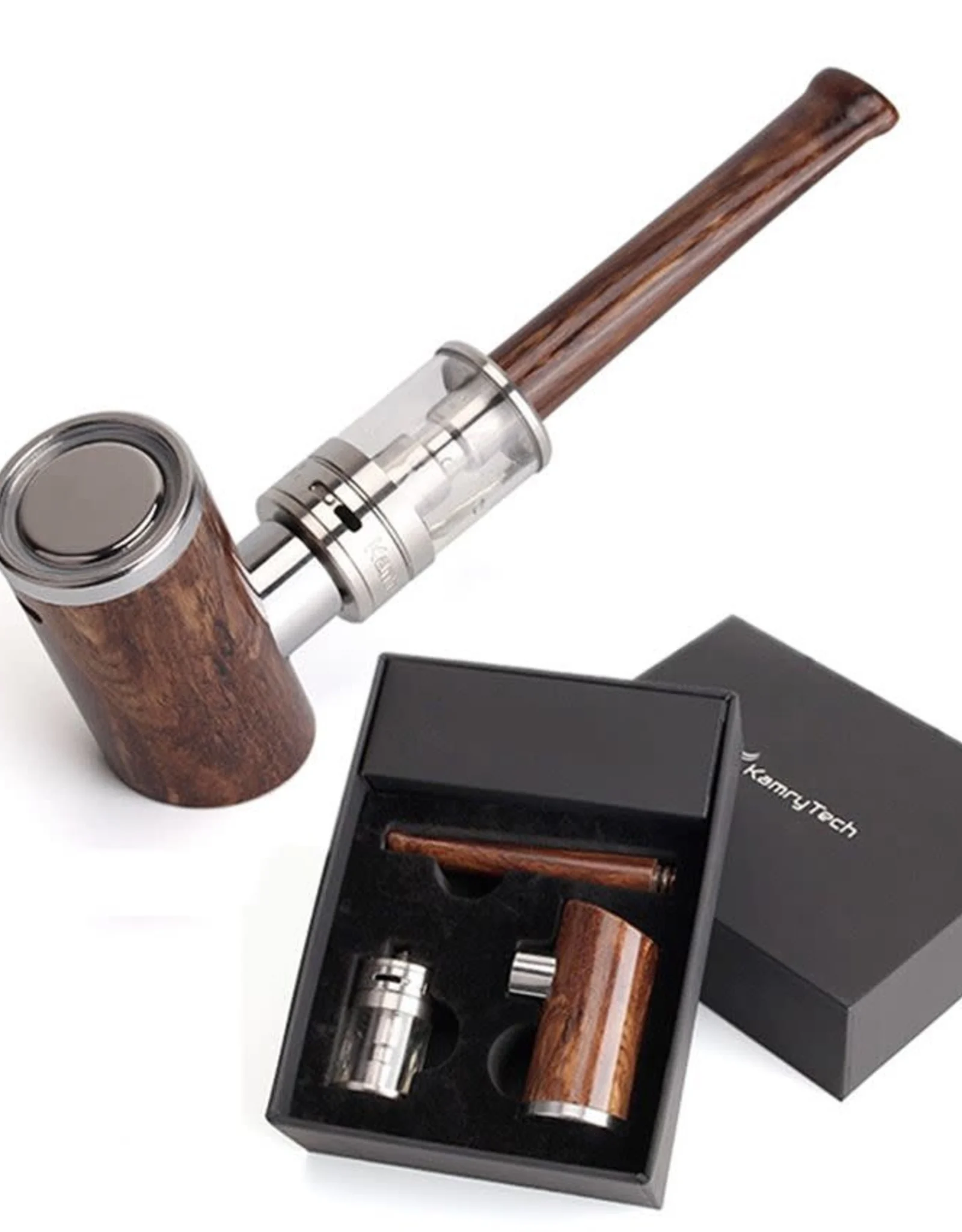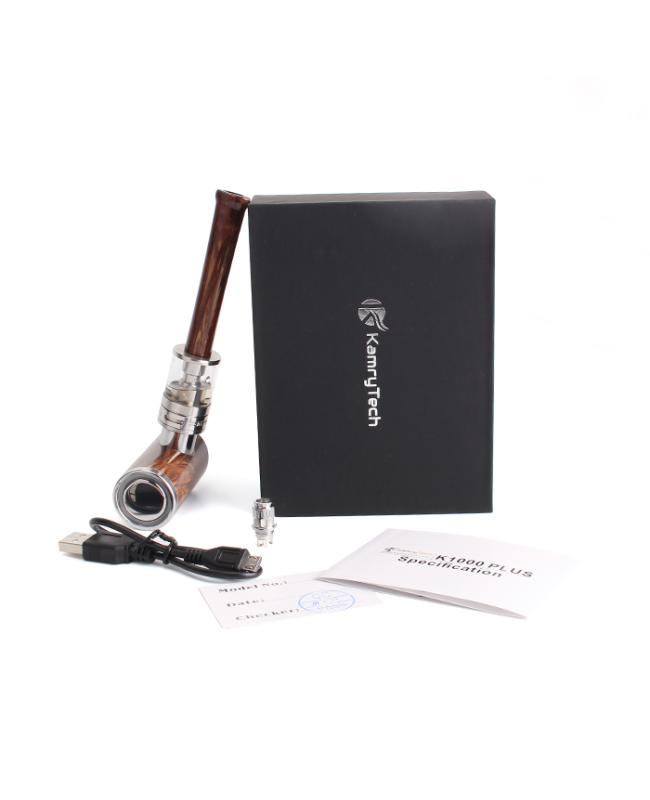 Kamry K1000 Plus Kit is a very nice looking reliable modern self-standing e pipe starter kit. It includes both a battery device and an atomizer. The perfect blend of classic and modern styling, the K1000 Plus with wood effect finish and stainless steel buttons. Made of high-end zinc alloy and anodized technology, with distinct layers of color that will never fade. The battery device shaped similarly to a traditional pipe is powered by an internal 1000mAh battery, with a trigger button on the top and an LED indicate ring. The K1000 Plus battery has a flat bottom to easily stand up when not in use and a micro USB charging port. This battery can reach up to 35W and has 510 thread. The high output of 35W produces a lot of vapor and pure taste, providing you with a real smoke taste. Using vaping instead of smoking, you can enjoy a healthier life. Built-in multiple safety functions, such as short-circuit protection, etc.