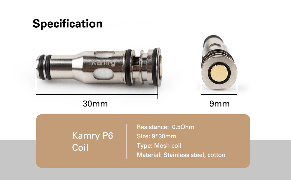 [Original & Sub-Ohm] Includes 5 genuine 0.5Ω coil atomizer heads. Produces richer vapor and is especially compatible with the Kamry P6 e-cigarette.